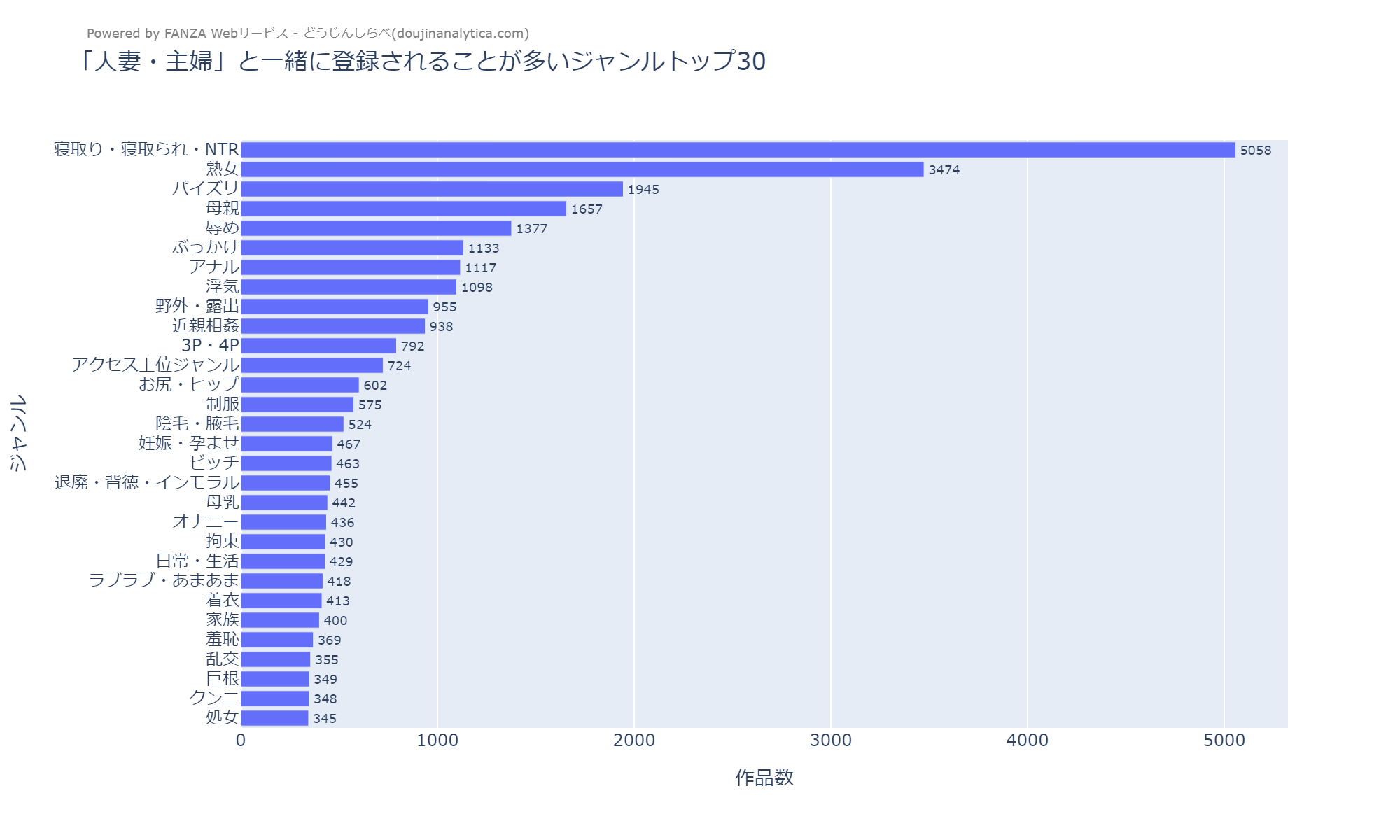 人妻・主婦ジャンルがどのような他ジャンルと組み合わされる傾向があるのかを分析します。
